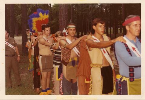 | From right to center are Forrest DeLoach, Wayne Oliver, Randy Wilson (no head in picture), Mike Meyer Von Bremen, Michael Meyer Von Bremen, Lloyd Graham. Far center with uniform on is Bill Graff District Executive for East District. |