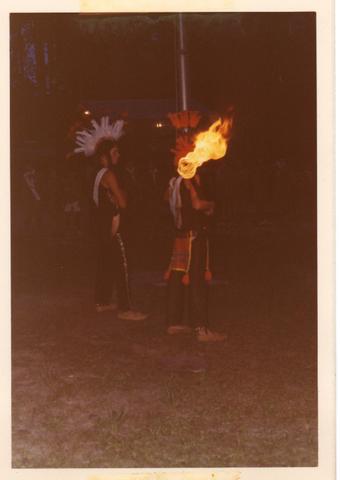 At this time the tap outs were held at the blue hole. Once a person was tapped out (by being hit over the shoulder with an arrow) they were taken across the blue hole in a canoe. When all the candidates were collected across the blue hole the were walked off the back way to collect information. |